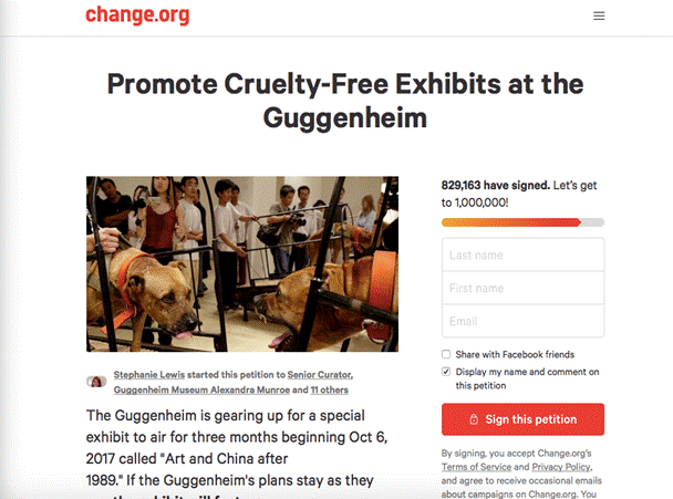 图7:抗议古根海姆展览的网络签名征集网站