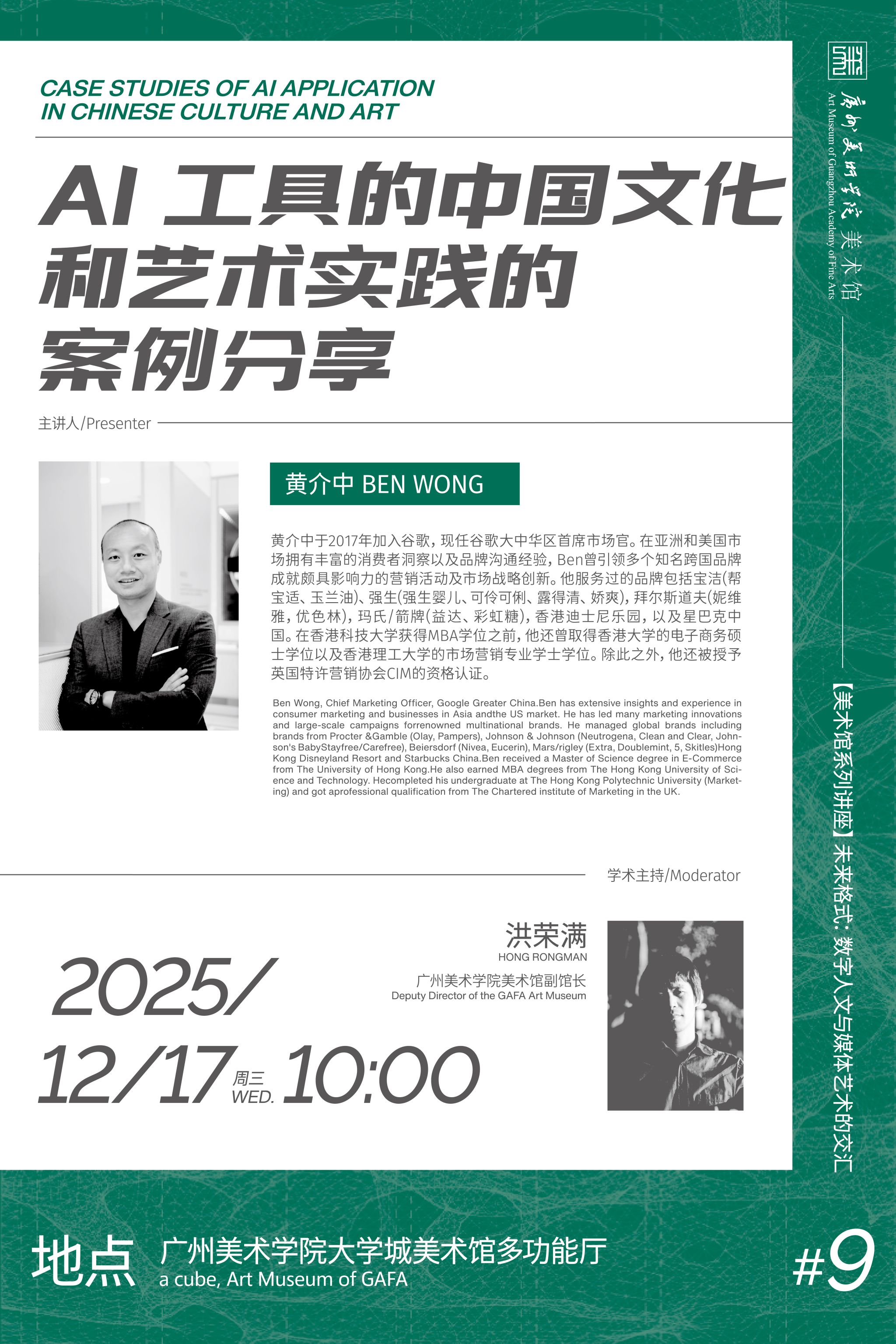 广州美术学院大学城美术馆邀请到沈朝方老师(浙江传媒学院讲师,浙江西取影视文化有限公司创始人,中国美术学院中国国际设计博物馆“先锋艺影”专业指导、顾问)进行当代艺术创作的讨论,分享从一个艺术家变成导演,后来又在电影学院从事的新媒体艺术电影创作的路途经验,以及这种跨学科和跨度是如何完成的。