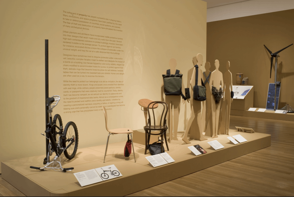 “安全:设计承担风险”探索的不仅仅是生理层面上的压力,还包括良好设计所提供的保护性和安全感如何缓解人的精神方面的压力。生理层面的设计包括为灾难和无家可归者提供庇护所、可供躲藏的家具、二氧化碳探测器、黑色防弹弹道玫瑰胸针;心理层面的设计则包括可防止身份盗窃,提供自卫和安慰的物品等。这些作品让我们意识到,设计可以对紧急情况作出反应,传达清晰的信息提供舒适感和安全感,也能解决诸如对黑暗和孤独的恐惧受地震和恐怖袭击的害怕等。与此同时,设计在提供保护身心免受危险或压力环境的影响下,并没有牺牲创新和发明精神。