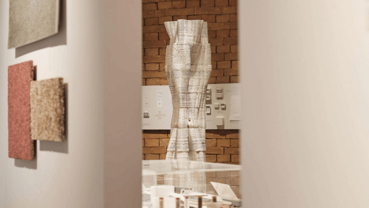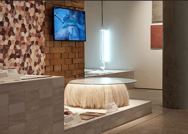 爆破工作室的《树列》(Tree Column)作品,将废弃物视为一种可利用的丰富资源,其设计灵感来自大自然。工作室将废弃的咖啡纸杯制成养料,喂给蘑菇菌丝体,再把菌丝体制成细小的渣泥,随后把渣泥运用3D打印成建筑柱体的有机形态,给出了一次性消耗品再利用的新方法。其他参展作品包括:全球废物危机的可视化设计、建筑废料制成的砖块、牛奶凝块制成的纽扣、船用塑料制成的椅子、可生物降解的替代品实验项目、从玉米壳中提取的木材替代品、覆盖藻类生物塑料亮片的高级定制连衣裙等。